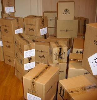 Det er litt pussig å tenke at disse varene har reist så langt, fra et helt annet klima. Så kommer de hit til et vinterdekt landskap med mange minusgrader. Det skal sies at vi velger den mest miljøvennlige fraktmetoden, nemlig sjøfrakt, når vi bestiller fra vår brasilianske leverandør. Det betyr at varene får en lang reise, helt opp mot to måneder. Derfor et det ekstra gledelig å endelig få varene levert. Det blir nesten en sånn sambastemning når vi bærer esker og pakker opp.