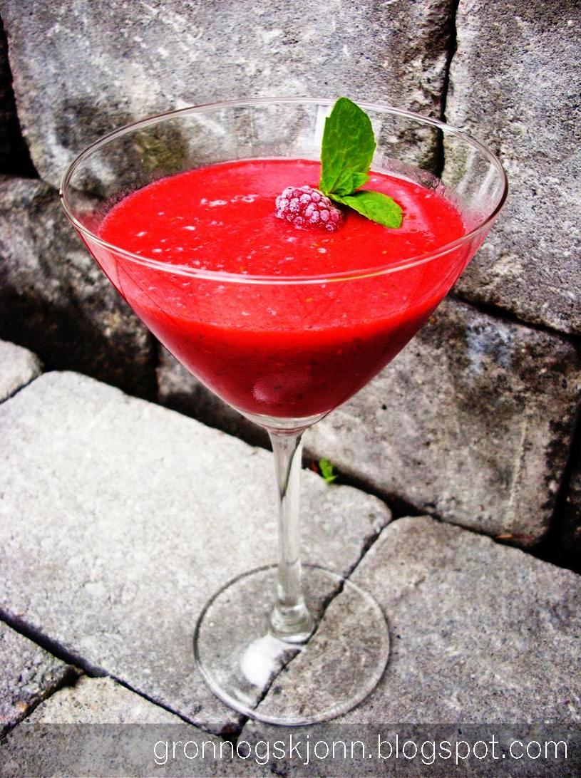 Nam! Denne kan med fordel nytes under parasollen i sommer! Ha masse frosne bringebær, noen frosne bananskiver og litt økologisk eplejuice i blenderen, kjør det sammen til en lett sorbet. Og voilà! Nytes som vanlig i høye glass med stett, pyntet med frisk mynte fra urtehagen!
