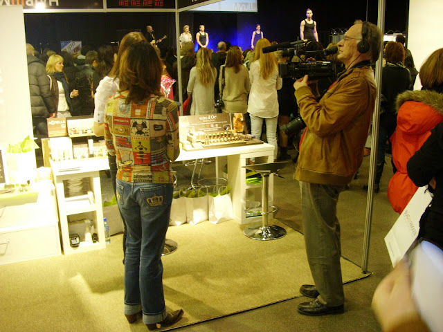 | Her blir jeg intervjuet og filmet på Green Spirit standen. På scenen i bakgrunnen foregår hårvisning til fengende rytmer. |